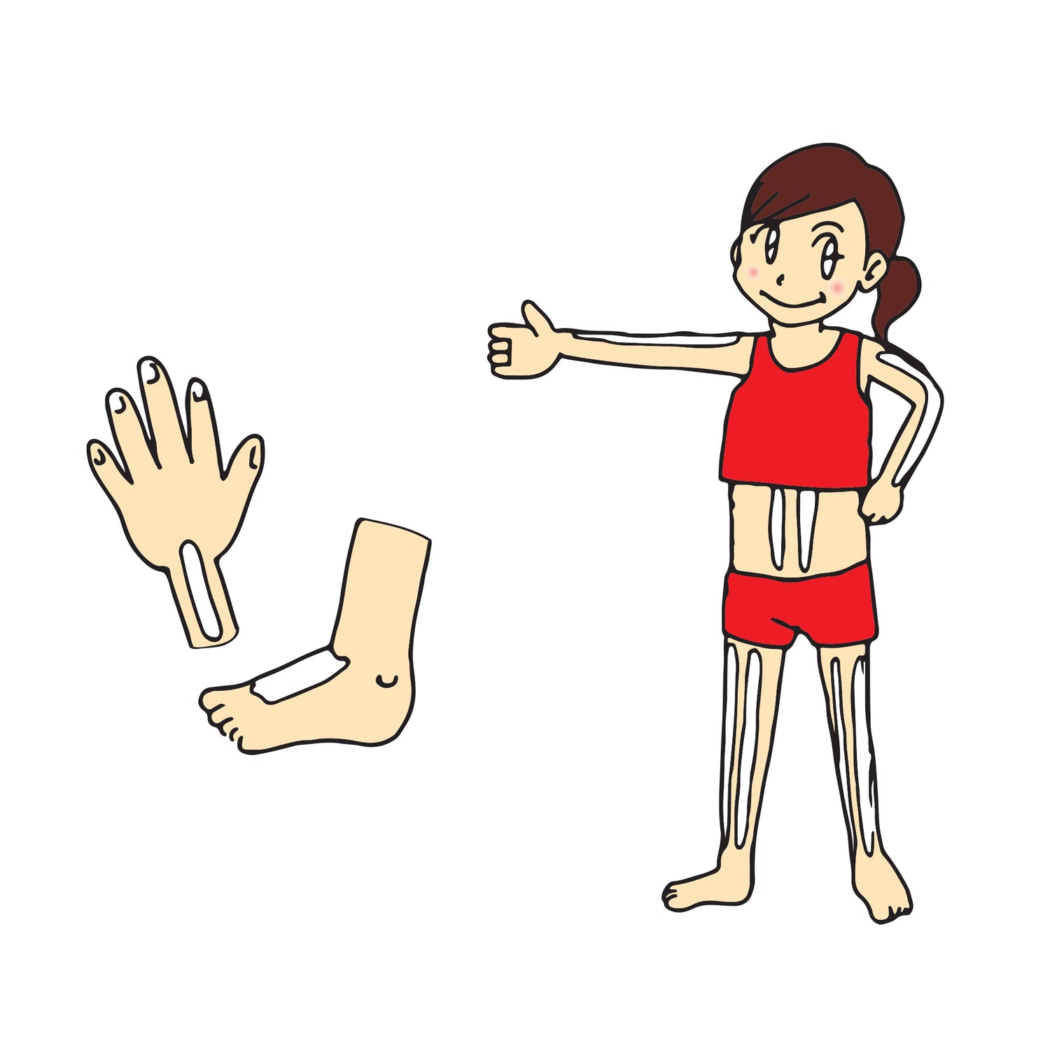 ① SAFE SEAを手の平にとってから体に塗るとムラになりやすいので、ボトル(またはチューブ)を絞りながら体にそって白い線を作ります。